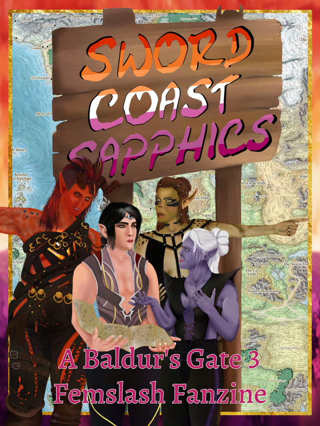 From the bisexuals in Baldur's Gate to the lesbians in Luskan, from the dykes in Daggerford to the asexuals of Amn, from the femmes of Firedrake Bay to the trans women of Tethyr, from the pansexuals of Phalorm to the butches of Beregost... and who could forget the women of Waterdeep? Or the non-binary of Neverwinter?Sapphic love comes in all flavours, and we want to celebrate it all with you, with the wonderful women of Baldur's Gate 3.